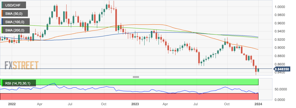 - The Swiss Franc weakens versus the US Dollar as US Treasuries rebound after a sustained decline for most of the end of 2023.