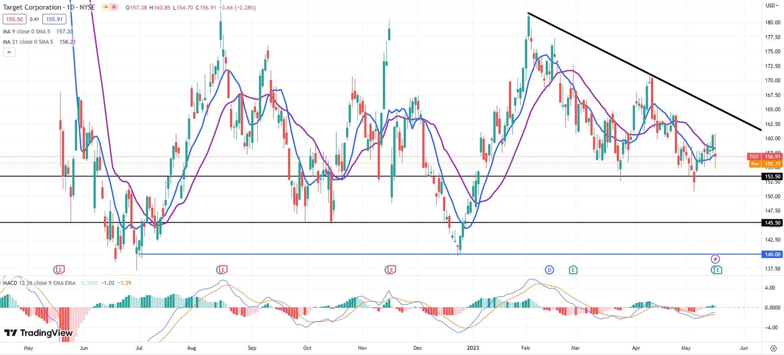 - TGT share price set to keep dropping, but support is nearby at $153.50.