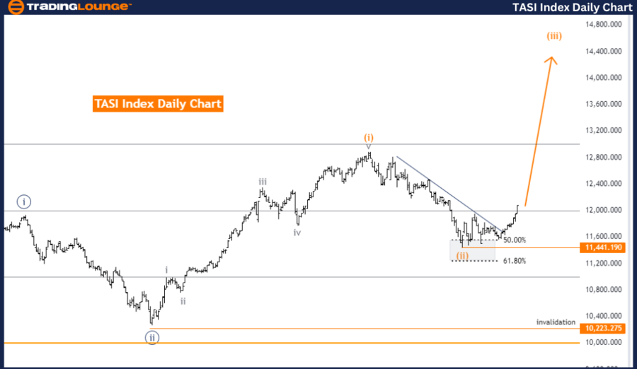 The TASI Index Elliott Wave Analysis for the daily chart offers detailed insights into the current market trend and wave structure. This technical analysis highlights a trend function, suggesting a clear market direction rather than a corrective phase.