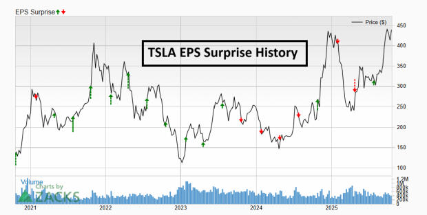 Meanwhile, Tesla has missed analyst expectations by an average of 3.65% over the past four quarters.