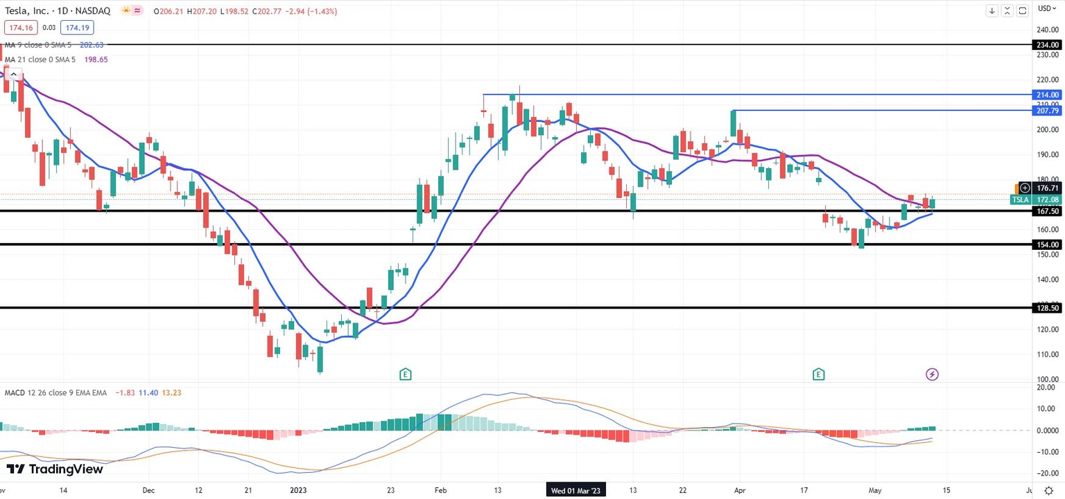 TSLA stock rose 1.5% to $174.69 in Friday’s premarket, while NASDAQ 100 futures added 0.2%.