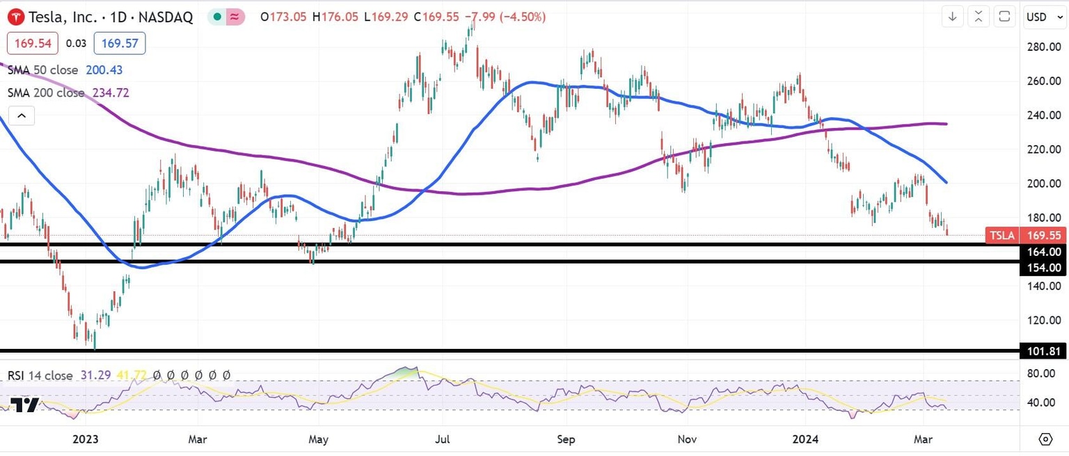 - Technical support for Tesla stock arrives soon in the $150s and $160s.