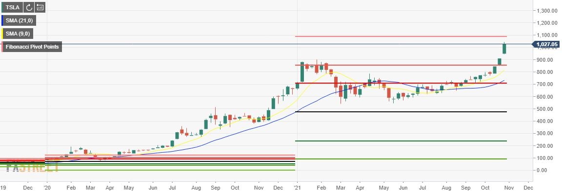 At the time of writing, TSLA is down 0.5% in the premarket but had traded up earlier. If traders think there is still more elevation to clear, then one target may be the R3 Fibonacci pivot point at $1,088.56.