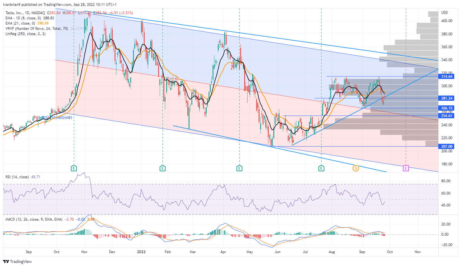 Overall, equities remain challenged, and valuations are likely to fall. Tesla is likely to get a boost if those reported numbers for the end of quarter deliveries are correct. That would again lead to a test of $314.64, which would really need to be broken. The more a level is tested the weaker it becomes. A break there would see the top of the trend at $350 as the logical target.
