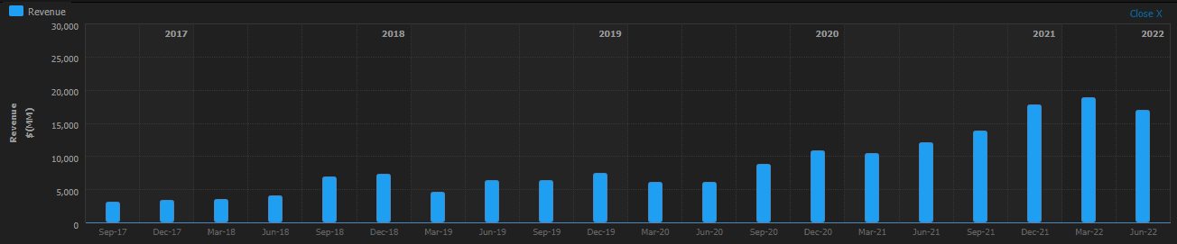 Our comparative valuation remains bullish, and we have tweaked our numbers here too resulting in a more bullish estimate. We believe this estimate is too high based on Tesla having a very high P/E rating of 90. We are forecasting this to lower to nearer 50 as equities remain in a bear market and the US enters a recession. Historically, P/E ratios decline by about 25% in a recession, the higher P/Es usually tend to see the greatest reduction. Also once companies move from a high growth phase to a more moderate growth level, P/E ratios decline. As we can see above, revenue growth is already slowing. Also of note and perhaps overlooked by many is a large portion of revenue growth has come from areas other than EV sales. Energy generation and storage increased, while automotive revenue actually declined from $16,861 to $14,602 quarter on quarter.