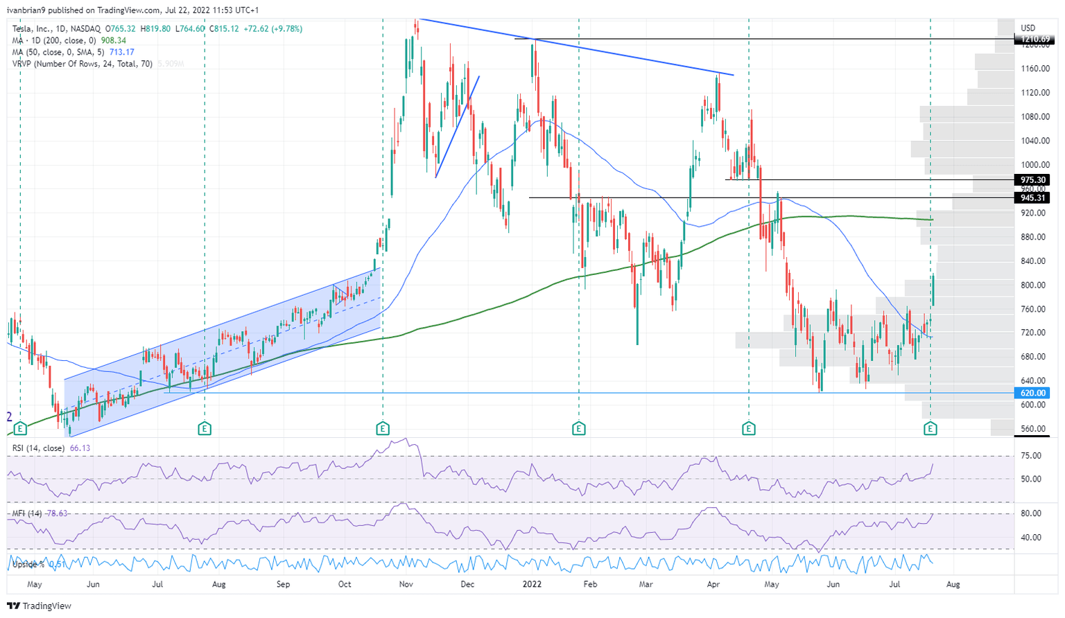 Tesla (TSLA) chart, daily