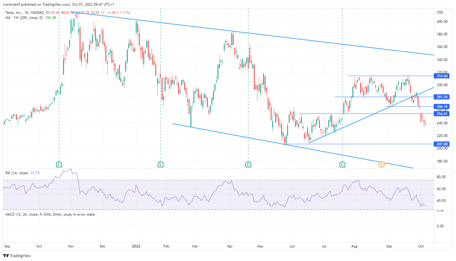 - Twitter acquisition appears to still be weighing on TSLA stock.