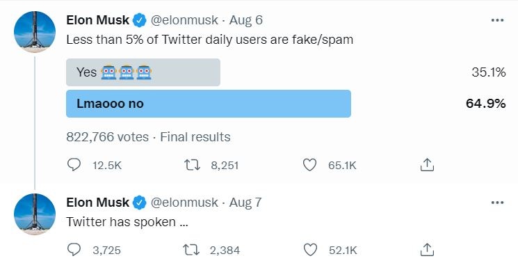 Musk has continued bating Twitter, saying that the platform's stance that less than 5% of its users are bots is a lie. Musk has stated in the past that the figure is closer to 20%. Part of Musk's initial April agreement with Twitter was to pay the company $1 billion if the buyout fails to go through.