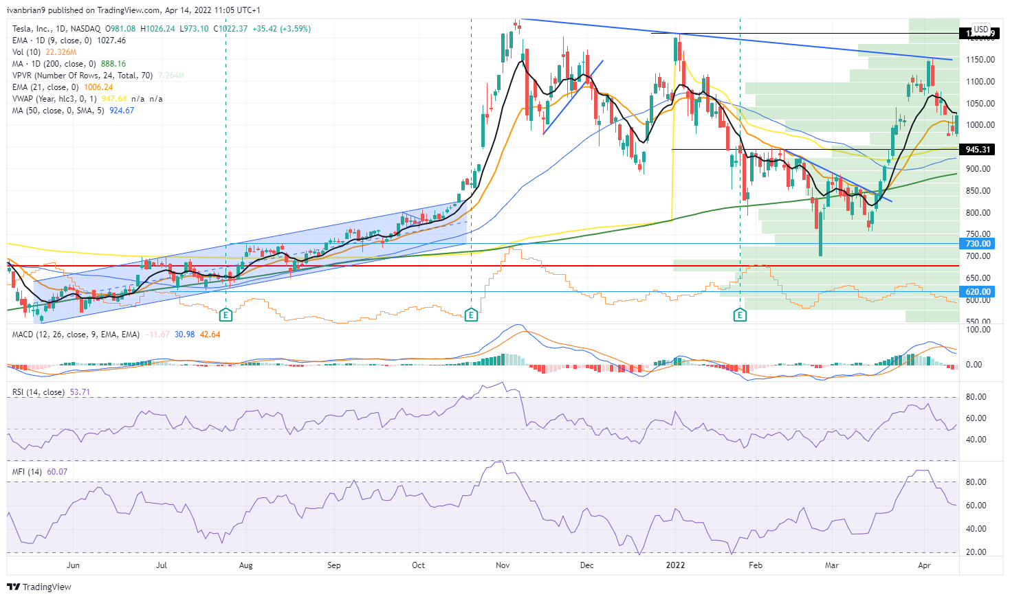 Tesla (TSLA) stock chart ,daily