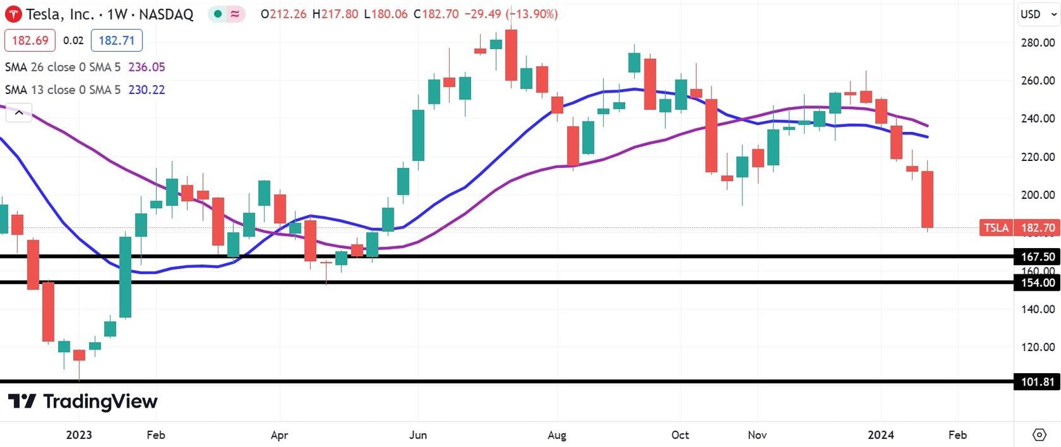 Both bears and bulls will focus on two historical support levels. These are $167.50 and $154. The $167.50 level supported reduced demand for TSLA stock in March and May of 2023. $154 was the ultimate bottom during that downtrend that reached a nadir that April.