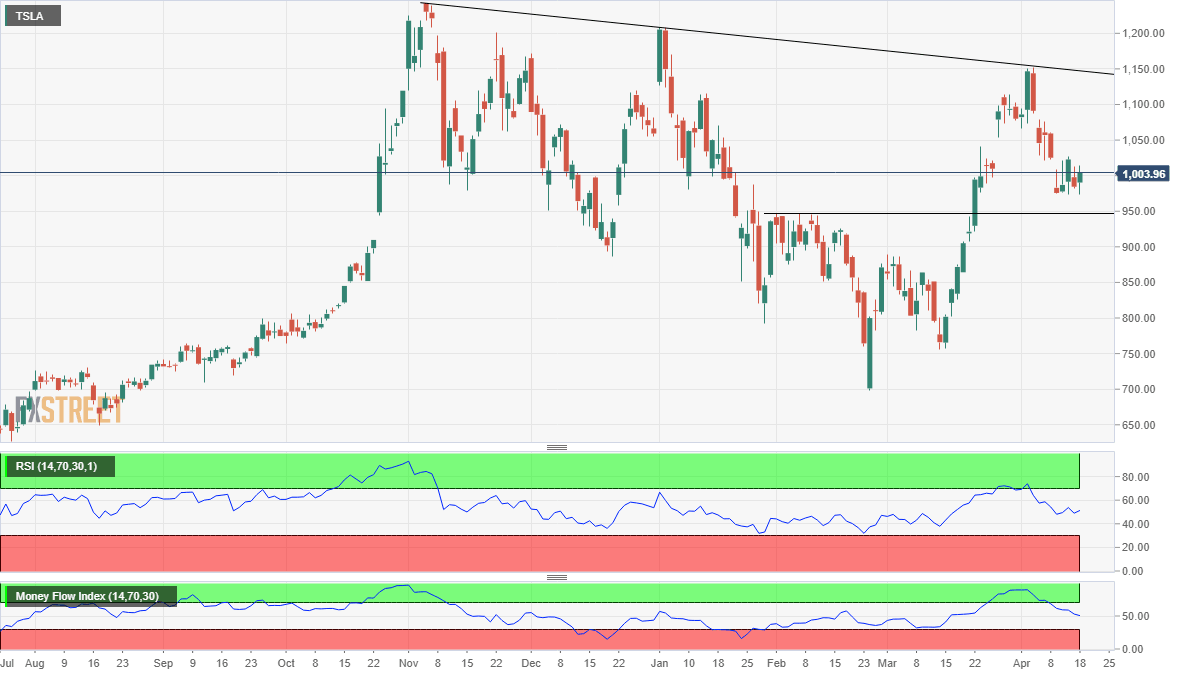 Tesla (TSLA) stock moved higher on Monday in relatively subdued trading due to the Easter break. Tesla closed up 2% on about 17 million shares traded when the average daily volume would usually be north of 25 million. However, the stock still performed well, outpacing gains made by the major indices on Monday.