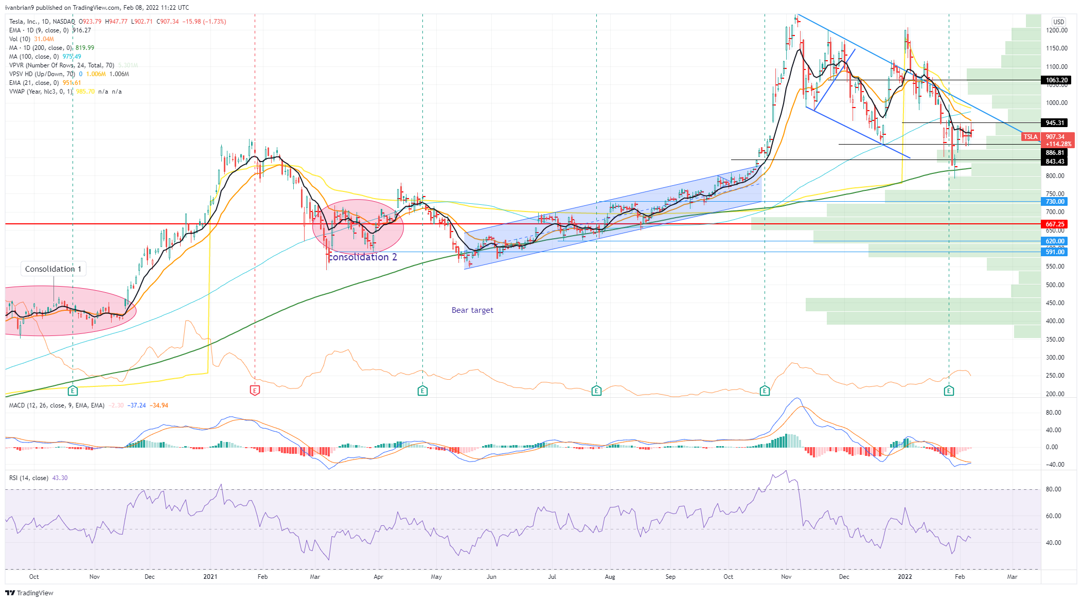Tesla (TSLA) chart, daily
