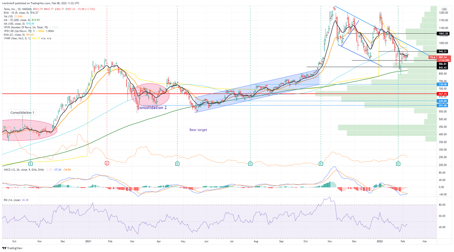 Recent moves have been choppy and directionless, so it remains to be seen if this recent news provides a further catalyst. Breaking above $945 will give bulls some hope in the short term. The longer Tesla remains below $945 then, the more likely it is to fail and retest the 200-day moving average.