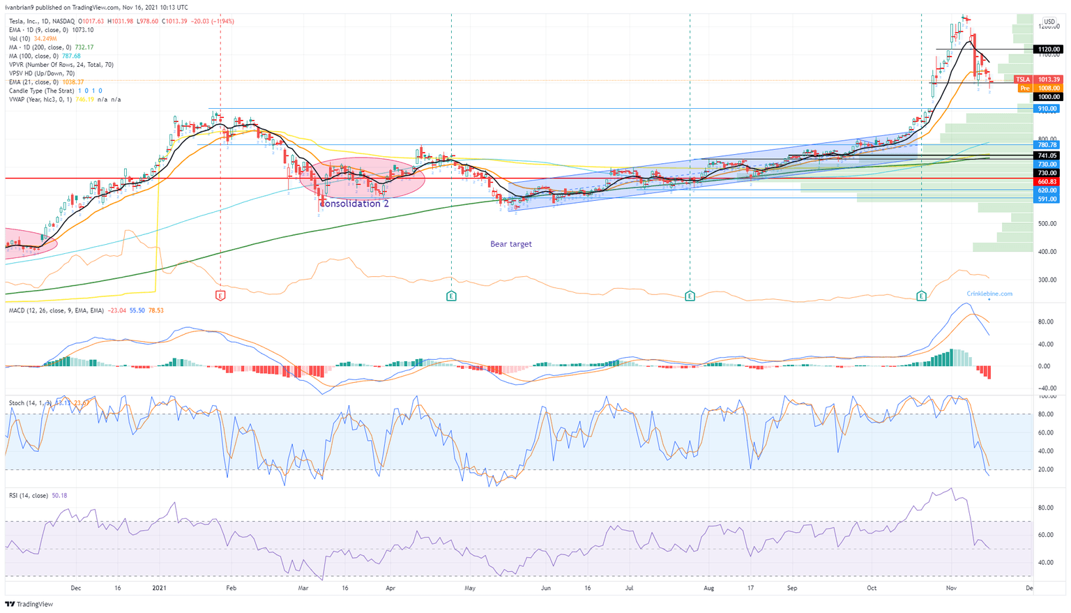 The chart has now regressed to the $1,000 support line, and early indications in the premarket are that Tesla shares may breach this too. The next support then becomes filling the gap at $910, the start of the recent price explosion. Once or if there, then it will be time to reevaluate. For now, resistance remains the 9-day moving average at $1,073 and then $1,120. However, we feel the short-term bearishness is set to continue, with just too many headwinds here for now.