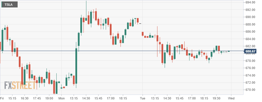 - Tesla shares fell 1.2% on Tuesday but started Wednesday green before fading.