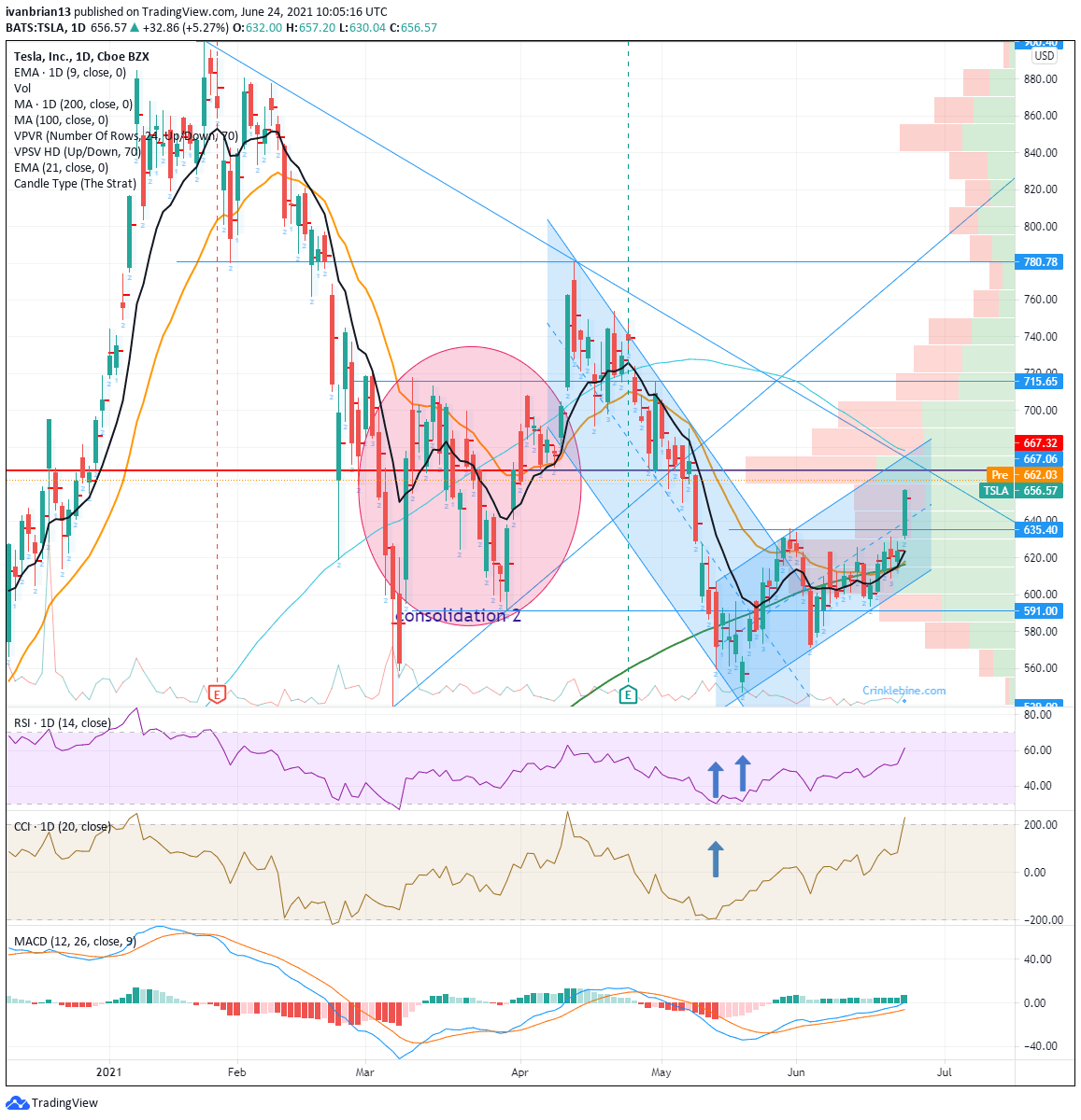- TSLA stock exploded again through the $667 resistance level.