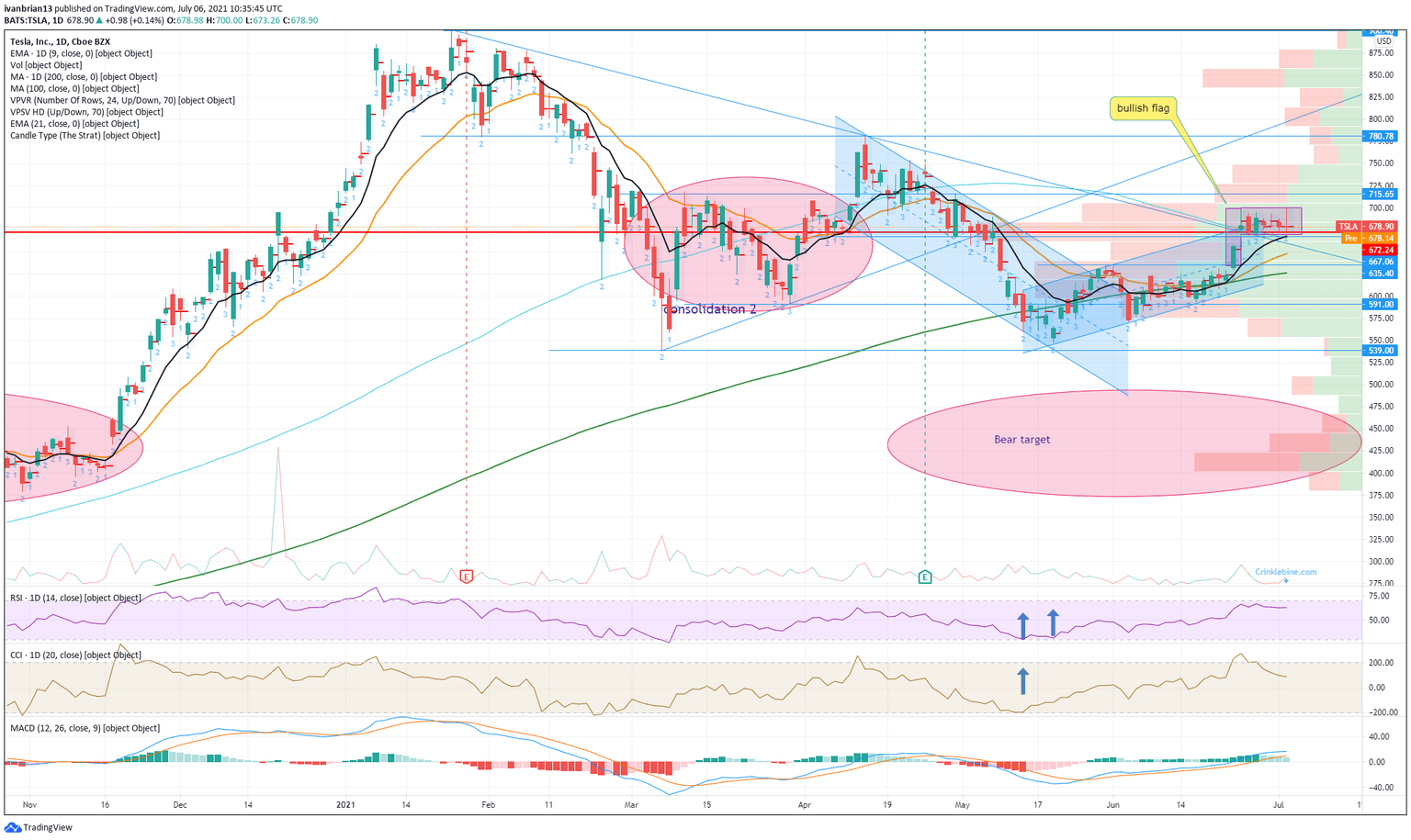 3. Above $667 Tesla remains bullish. A break lower, and all bets are off.