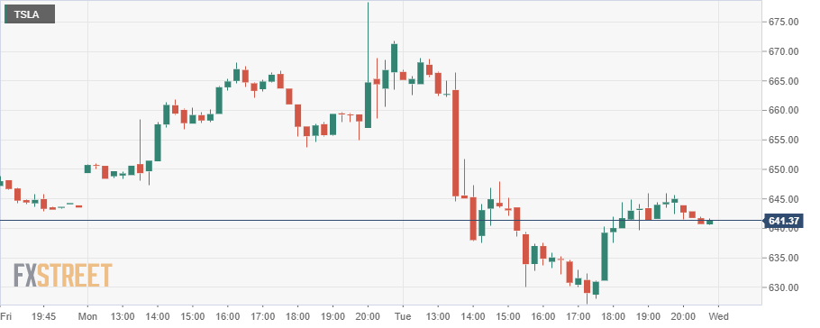 - Tesla shares drop in Tuesday's session to close 2% lower.