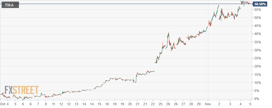 - Tesla stock notched another day of gains, up a modest 1.3%.