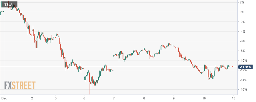Update, December 14: Tesla shares tanked almost 5% to $966.41 on Monday, hitting the lowest levels in five days. The sell-off ensued as the broader Wall Street indices tumbled on fears over the spread of the Omicron covid variant and pre-Fed anxiety. The Fed is likely to deliver a hawkish decision on Wednesday in a bid to combat elevated inflation. The Nasdaq Composite Index (NASDAQ) lost 1.4% of its value, prompting Tesla's stock price to lose the $1,000 mark.