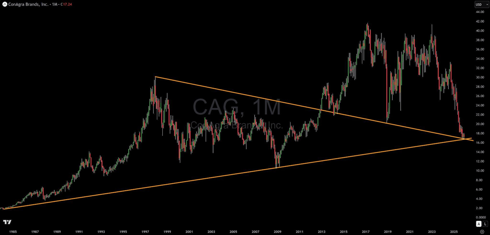 Ignore the headlines. Ignore the noise. If you want to know where the next major opportunity is, you look at the chart. The chart is the only thing that doesn't lie, and right now, ConAgra Brands (CAG) is flashing a technical setup that has been over four decades in the making.