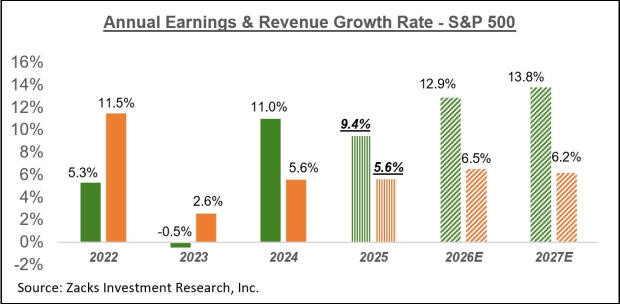 For 2025 Q3, total S&P 500 index earnings are expected to be up +5.5% from the same period last year on +6.2% higher revenues.
