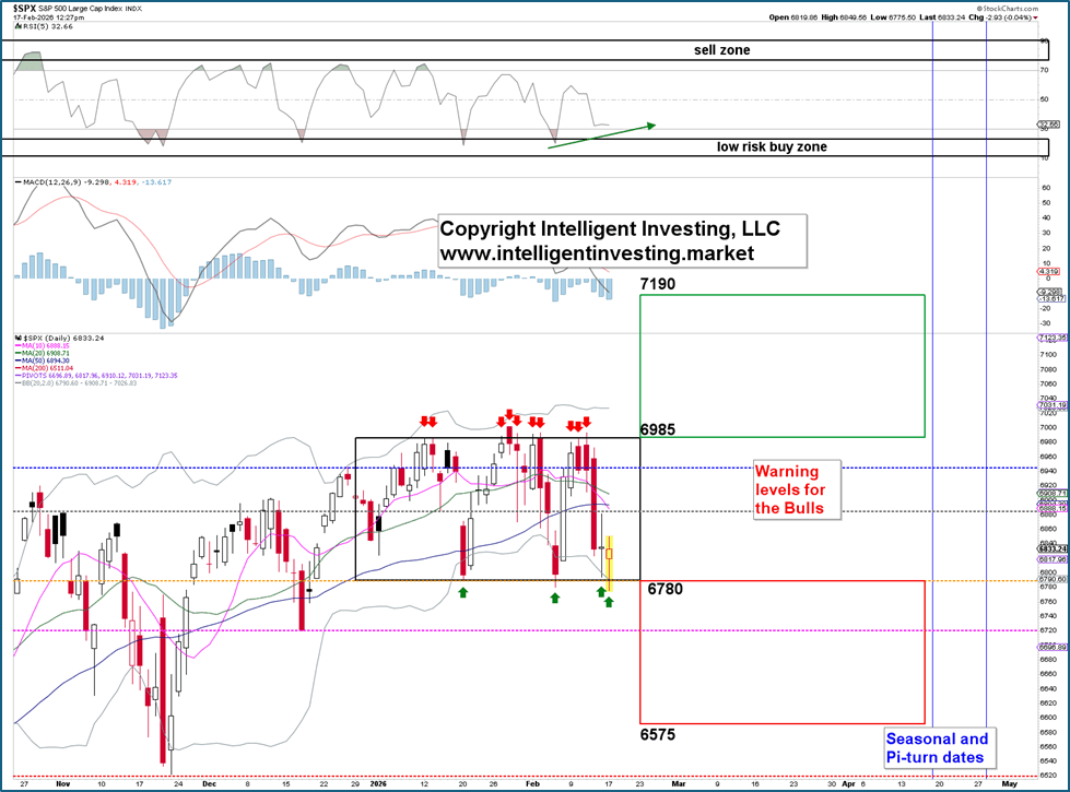 The SP500 is range-bound and must hold 6780 to still allow for an April peak.