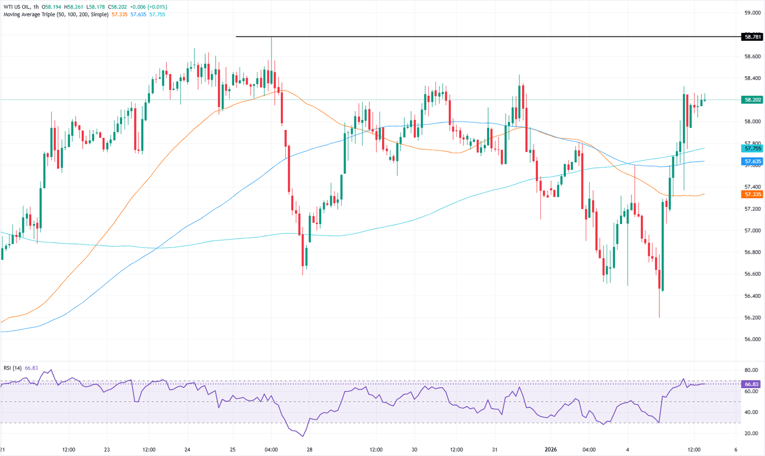 WTI began the week on the front foot, registering gains of more than 1.85% on Monday, bouncing off daily lows of $56.19 per barrel. Since then, US oil prices cleared $57 and the $58 mark.