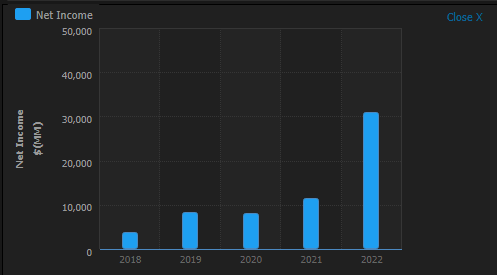 Below we can see growing net income and revenue and the paydown of long-term debt. BHP now has cash over its debt pile, so it could essentially pay it down if it wanted to.
