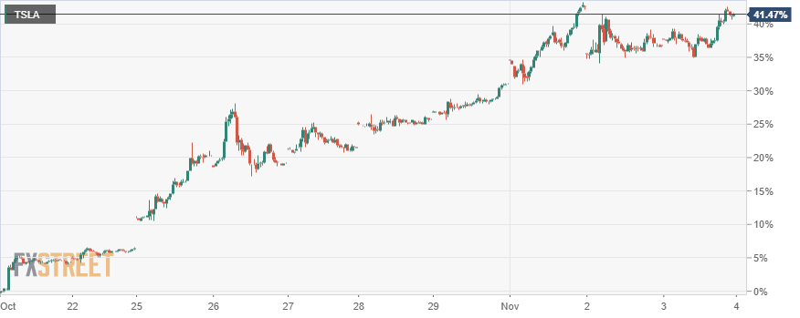 Options volume remains sky-high in Tesla (TSLA) with the latest record move being driven by record buying of Tesla call options, many expiring tomorrow, Friday November 5. That could make next week interesting. The whole Hertz saga continues on without much resolve. Elon Musk had dampened down news of the deal with Hertz saying it made no difference to Tesla economics and that no deal was signed anyway. Hertz seemingly responded, saying it had seen huge demand for Teslas and had already taken some deliveries. Hmm, interesting, that one.