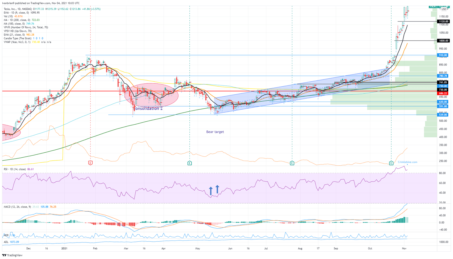 I am also a huge admirer of Tesla and Elon Musk. Both have single-handedly created a marketplace for electric vehicles and dragged mainstream automakers into the space. In effect, Tesla is helping to turn the entire auto industry green. However, despite such admiration, I must confess to seeing the current valuation as sky-high. Can Tesla continue to offer stratospheric growth levels to justify such a high valuation? Amazon went through a similar phase too, so is Tesla on a similar path and growth trajectory to Amazon (AMZN)? Short-term traders need not concern themselves with such valuation calculations. They need to focus on the trend and use strong risk management.