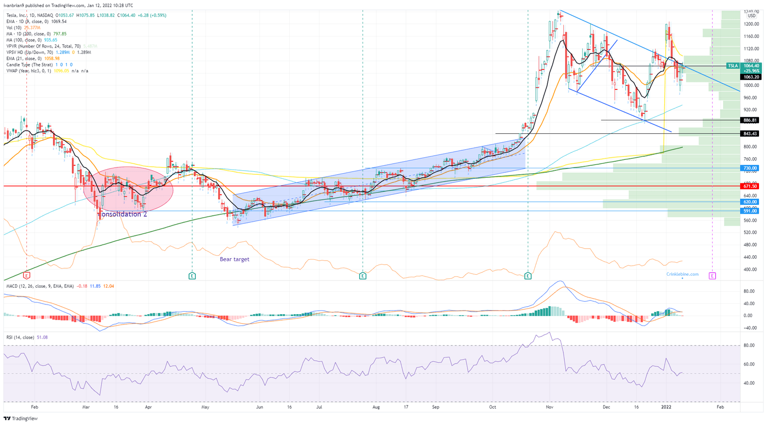 Tesla (TSLA) chart, daily