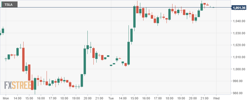 Tesla (TSLA) began Tuesday in a subdued mood with the stock trading lower in the premarket and looking to crack the $1,000 support line. However, a huge surge in the whole electric vehicle sector saw Tesla turn the narrative around and close strongly up at $1,054.73 for a gain of 4.1%. The move was once again ignited by Lucid Motors (LCID) and Rivian (RIVN), which only had its IPO last week.