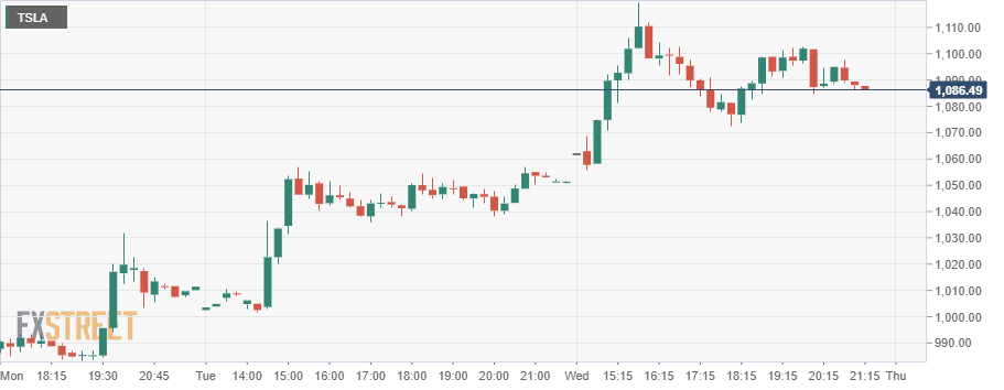 - Tesla stops just at the $1,120 resistance level.