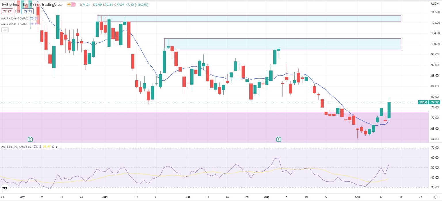 Twilio (TWLO) stock rallied 10% on Wednesday to close at $77.97. The excitement stems from some bad news for workers. The company said it would lay off approximately 11% of its workforce in order to make a more direct attempt to reduce operating losses.