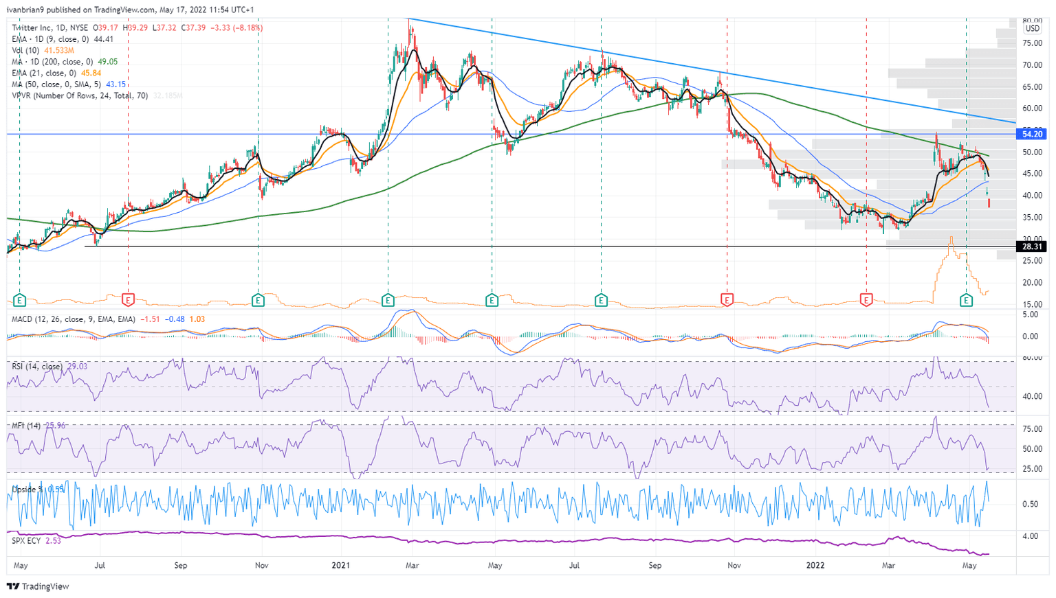 On Monday Musk tweeted that Twitter's legal team had contacted him to say he was in breach of a non-disclosure agreement. So it seems the two parties are getting more entrenched and further apart. Regular readers will know one of our favorite sayings is that the market hates uncertainty, and there is a lot of uncertainty here. Growing by the day.