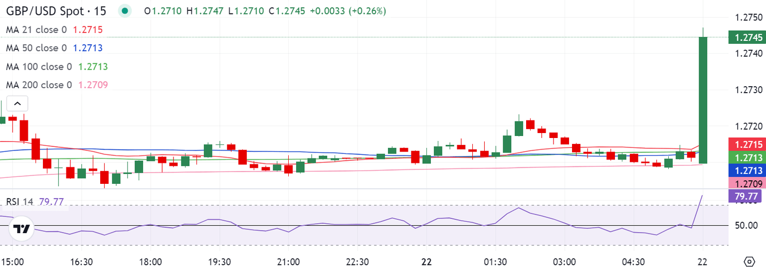 GBP/USD caught a fresh bid wave toward 1.2750 in an immediate reaction to UK CPI data, before quickly reversing to near 1.2740, where it now wavers. The pair is trading 0.27% higher on the day.