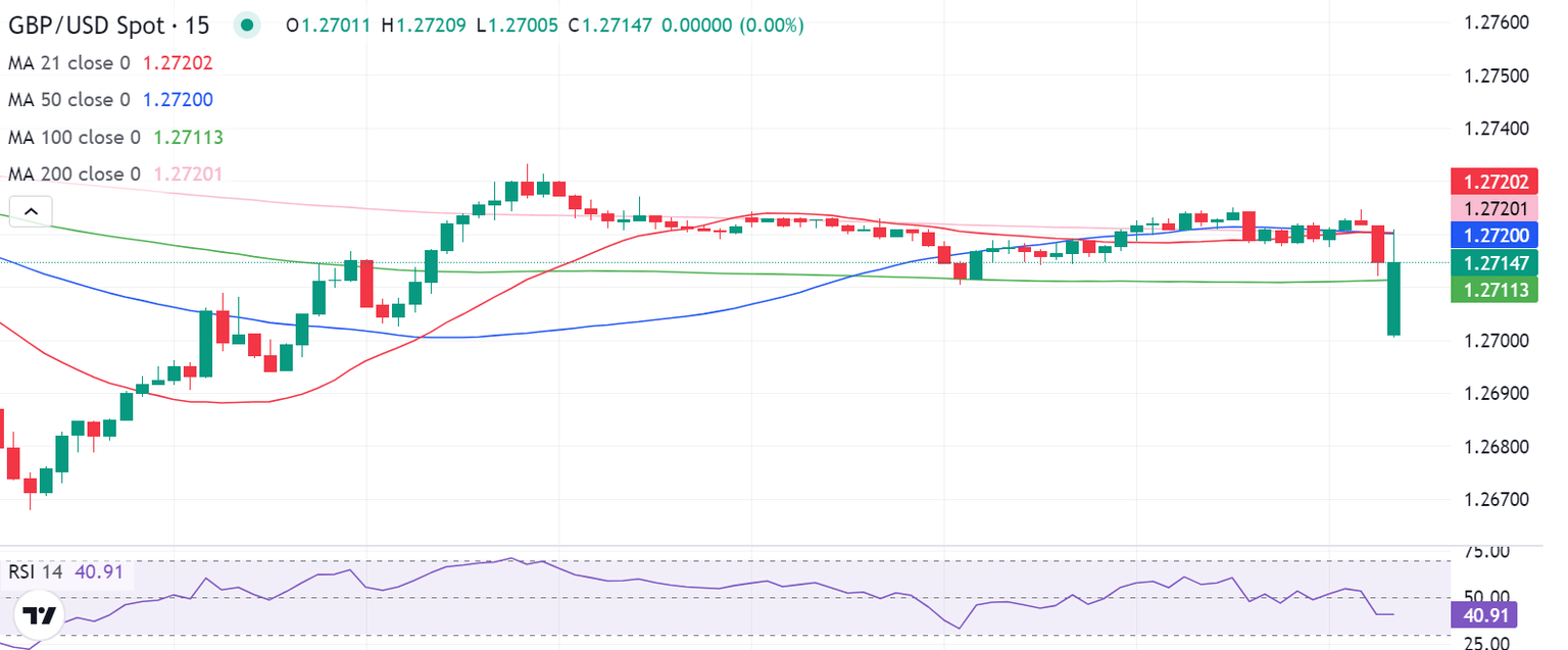 GBP/USD came under intense selling pressure and tested 1.2700 on the downbeat UK headline CPI data, before rebounding to near 1.2720, where it now wavers. The pair is trading modestly flat on the day.