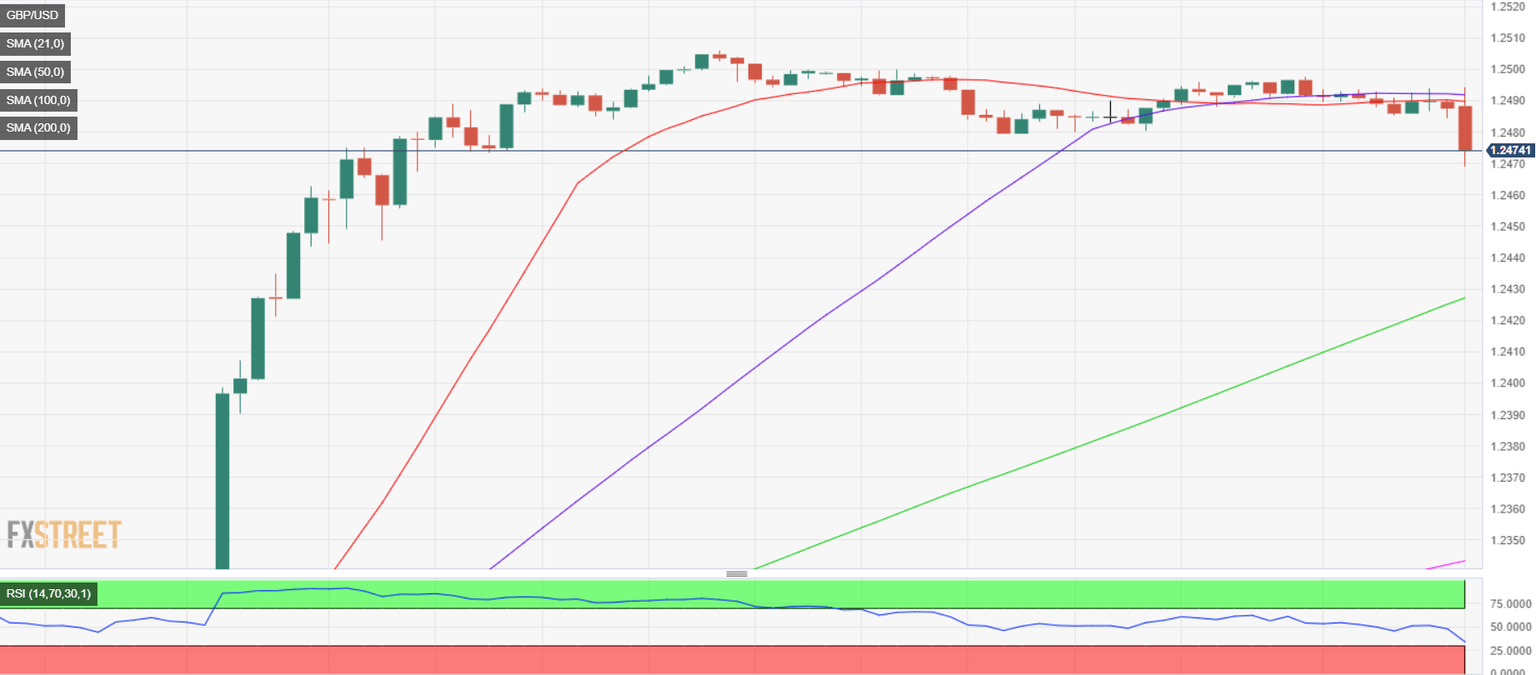 GBP/USD came under fresh selling pressure on the UK CPI data, easing toward 1.2450. The spot is falling 0.19% on the day to trade at 1.2473, as of writing.