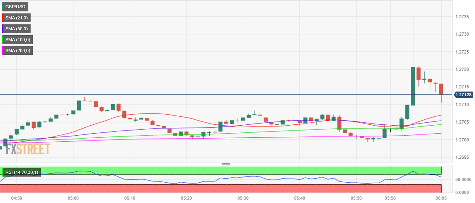 - The GBP/USD pair jumps back above 1.2700 on mixed UK CPI inflation data.