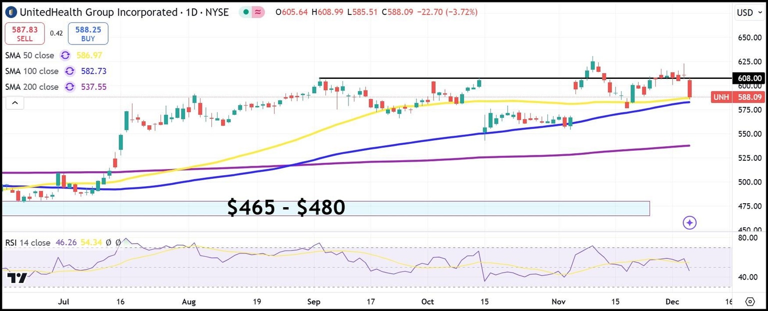 UnitedHealth Group (UNH) stock is trending lower on Thursday, a day after news shocked that nation when the CEO of its largest insurance unit was assassinated outside an investor event in Manhattan on Wednesday. The UNH share price rose 0.9% on Wednesday but has descended more than 4% on Thursday morning.