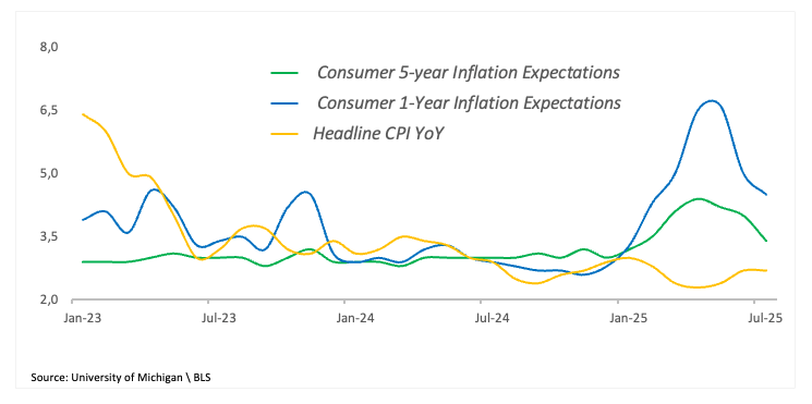 The U-Mich survey will land just after July’s US Inflation Rate, which showed the headline Consumer Price Index (CPI) holding steady at 2.7% from a year earlier, while the core CPI increased to 3.1% compared to the same month in 2024, reinforcing the persistence of domestic inflationary pressure and the cautious approach taken by the Federal Reserve (Fed).