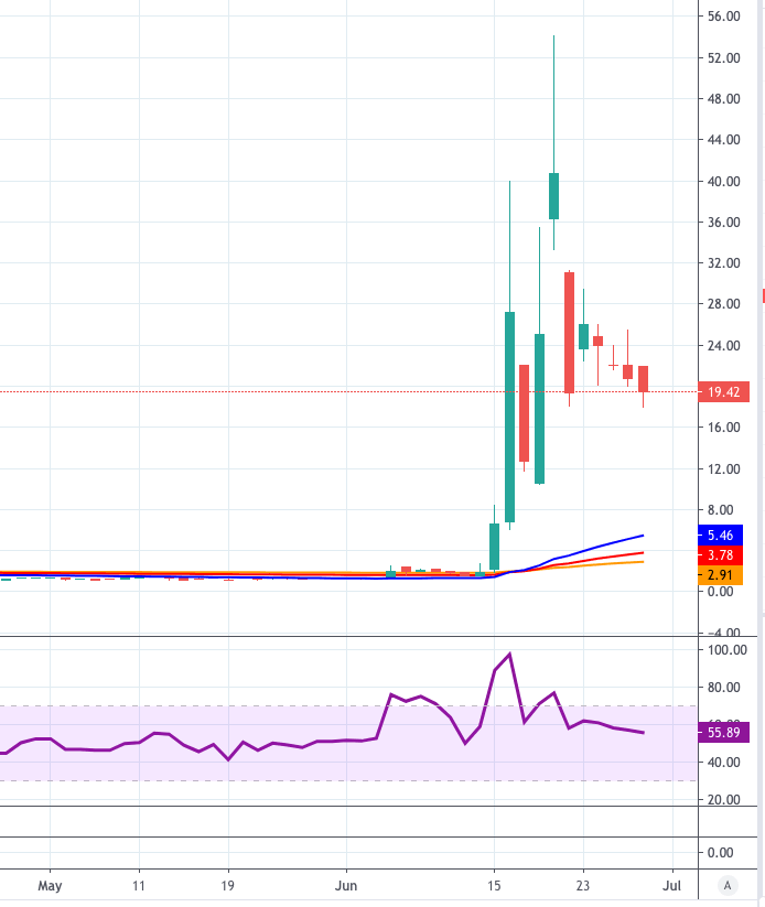 At the moment, UONE is retreating11.57% at $18.35 and faces the next support at $18.00 (weekly low Jun.29) seconded by $5.44 (55-day SMA) and then $2.91 (200-day SMA). On the flip side, a surpass of $31.22 (high Jun.22) would aim for $40.00 (high Jun.16) and finally $54.16 (2020 high Jun.19).
