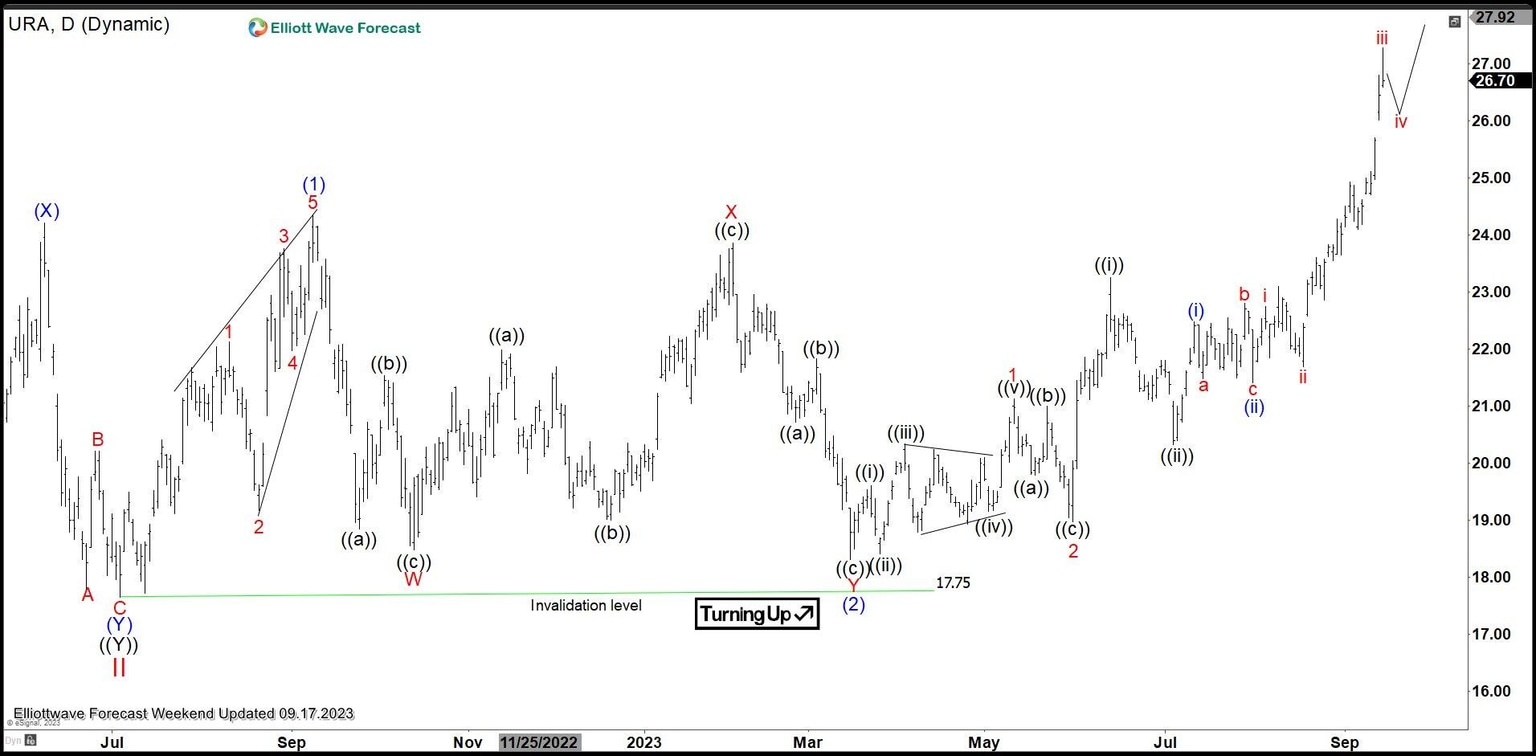 The Global X Uranium ETF ($URA) is an exchange-traded fund (ETF) that seeks to provide investment results that correspond generally to the price and yield performance of the Solactive Global Uranium & Nuclear Components Total Return Index. In this article, we will look at the long term technical outlook using Elliott Wave method.