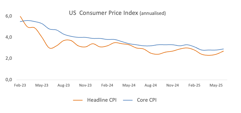 The United States (US) had an annual inflation rate of 2.7% in June, as measured by the Consumer Price Index (CPI), up from 2.4% in May, according to the US Bureau of Labor Statistics (BLS) on Tuesday. This figure matched the market forecast.