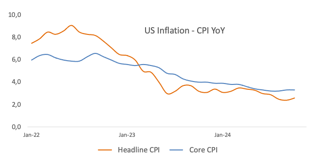 As measured by the CPI, inflation in the US is expected to increase at an annual rate of 2.7% in November, slightly higher than the 2.6% growth reported in the previous month. Core annual CPI inflation, which excludes volatile food and energy prices, is projected to remain steady at 3.3% during the same period.