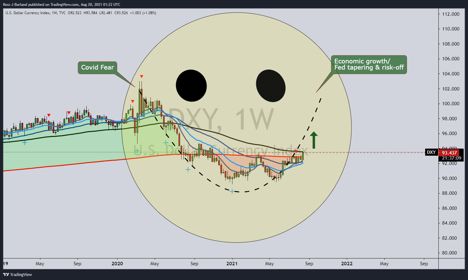 The US dollar smile theory continues to play out to the point that it has broken technical structure and resistance confluences on the longer-term charts.