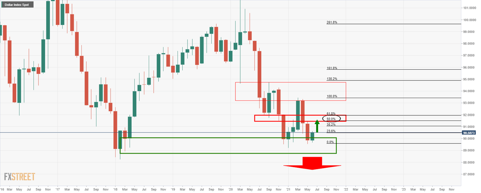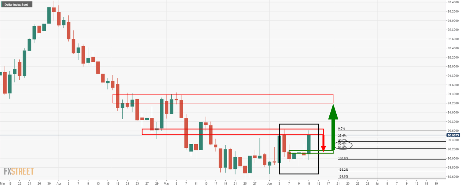 As per, Chart of the Week: US dollar in focus at demand area, forex hoping for a spike in vol, there are bullish probabilities towards 91.50 on the following chart analysis.