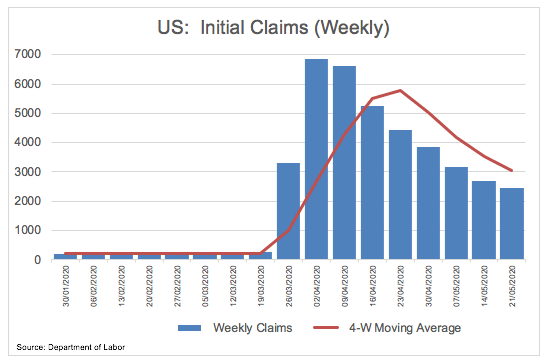 In the meantime, focus remains on the gradual re-opening of the economy against the backdrop of alternating risk appetite trends and somewhat improving data releases from record drops.