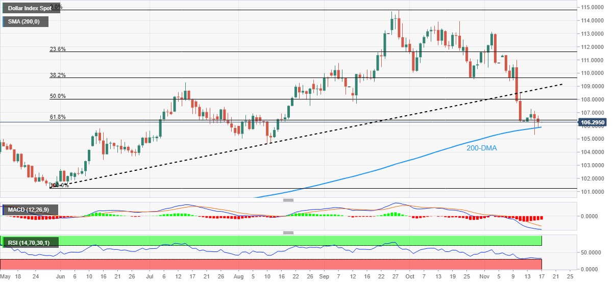 US Dollar Index (DXY) seesaws around 106.30 as the 200-DMA challenges the bears early Thursday.